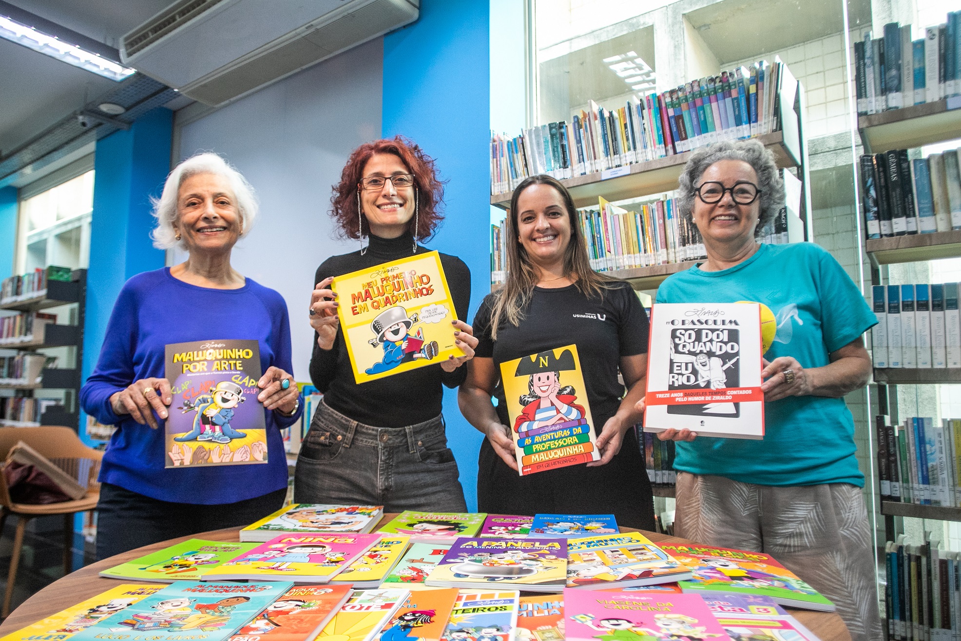 Instituto Ziraldo doa livros para biblioteca. na foto Dona Santinha, Adriana Lins, Penélope Portugal e Cubele Teixeira . Foto Igor Silva