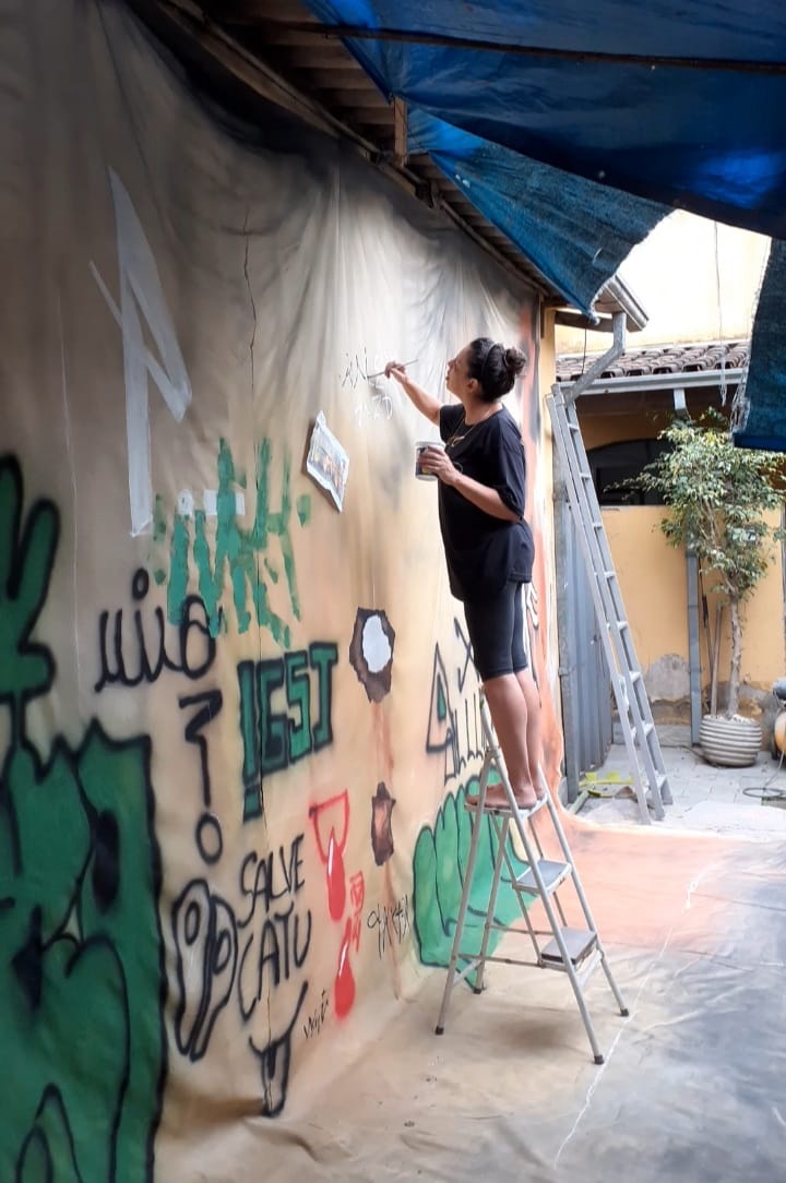 Artista Plástica Magda Libânia pintando cenário do projeto Pedra Mole Estação das Artes (2)