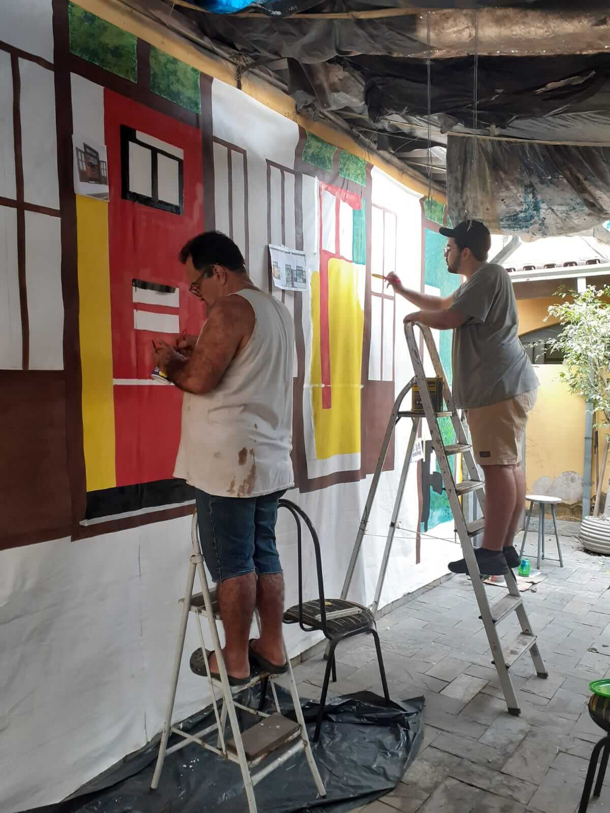 Artistas plásticos Waldir Lima e Vitor Anacleto na pintura do cenário da Estação Pedra Mole (1)